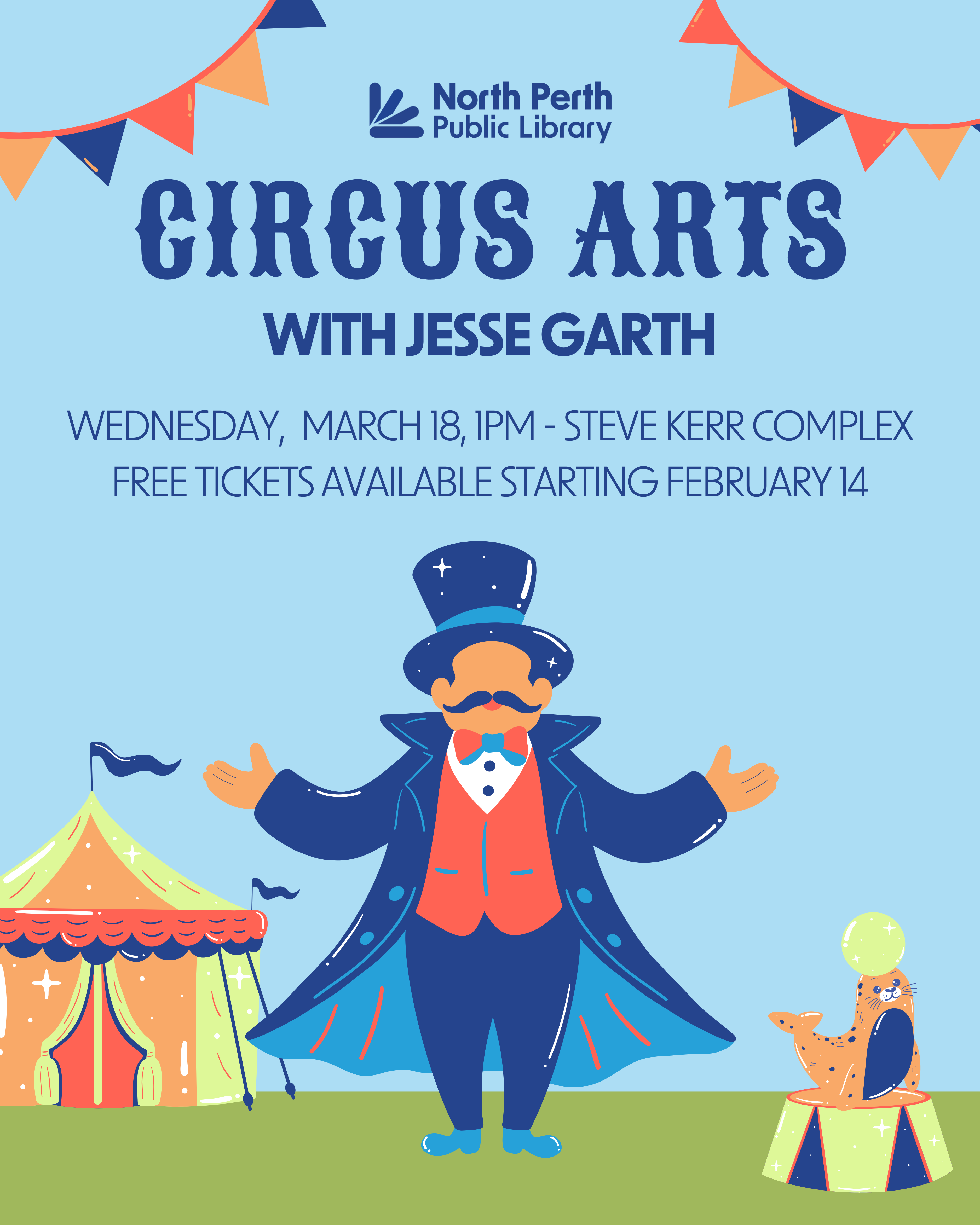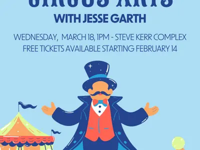 Our "headliner" to the programming lineup is Circus Arts with Jesse gARTh who is a juggling extraordinaire. Get your free tickets now to enter. Children must be able to sit through hour duration of the show. All must have a ticket to enter. Join us on March 18 at the Steve Kerr Complex to see the show!